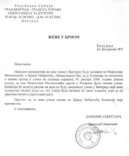 Žene u crnom, Beograd
