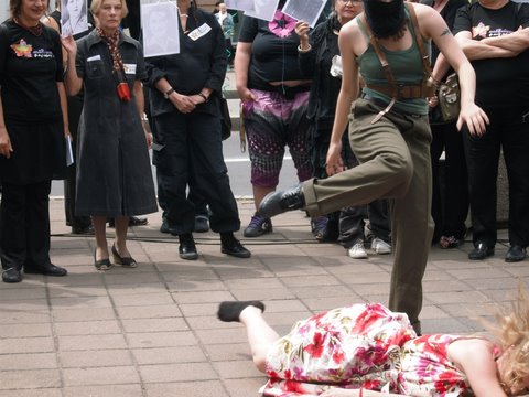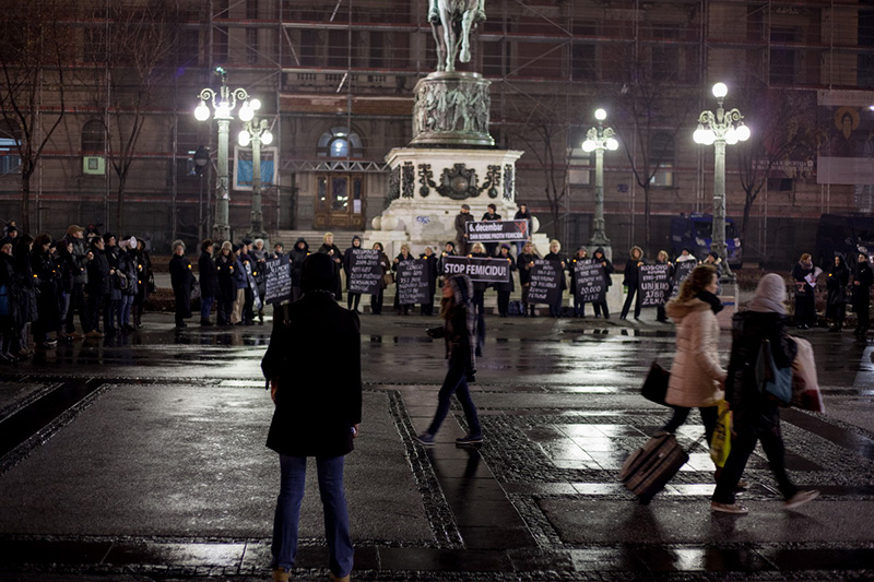 Povodom Dana borbe protiv femicida, 06.12.2013, Žene u crnom su organizovale stajanje u crnini i ćutanju, na Trgu Republike u Beogradu.