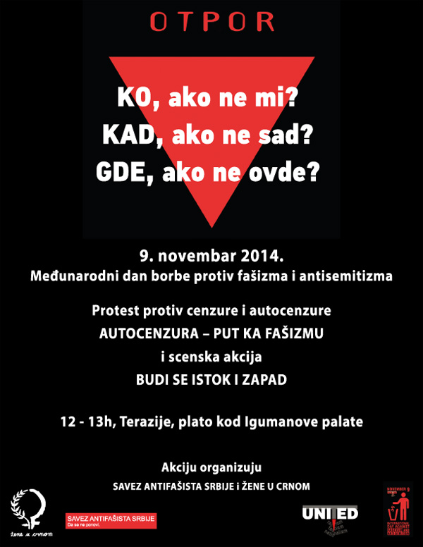Žene u crnom organizuju akciju solidarnosti "Stop rasizmu. Solidarnost sa azilantima!" sa azilantima i azilantkinjama 21. marta od 15h do 16h na Trgu Republike u Beogradu. Akciju organizujemo povodom Međunarodnog dana borbe protiv rasizma i antisemitizma...