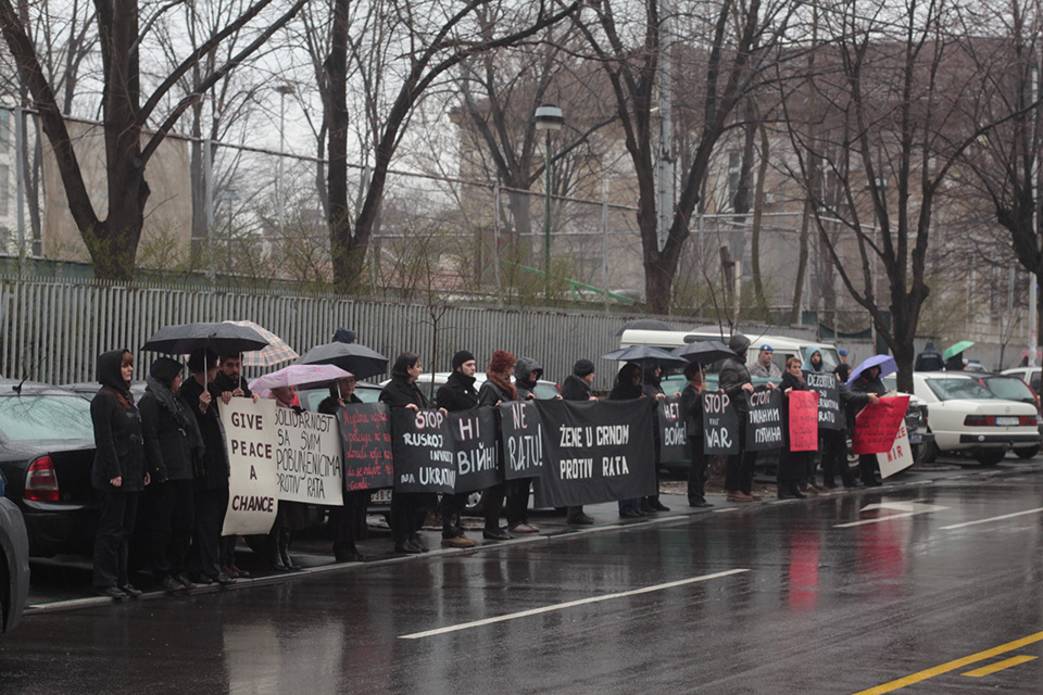 Povodom ruske invazije na Ukrajinu, Žene u crnom su dana 05. marta 2014. godine, u crnini i ćutanju, organizovale protest ispred ambasade Ruske federacije u Beogradu, u Deligradskoj ulici.