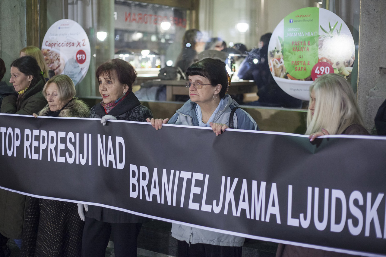 Povodom Međunarodnog dana braniteljki ljudskih prava, Žene u crnom su održale protest u crnini i ćutanju pod nazivom Stop represiji nad braniteljkama ljudskih prava, u Knez Mihailovoj ulici, u Beogradu, 29.11.2014. godine.